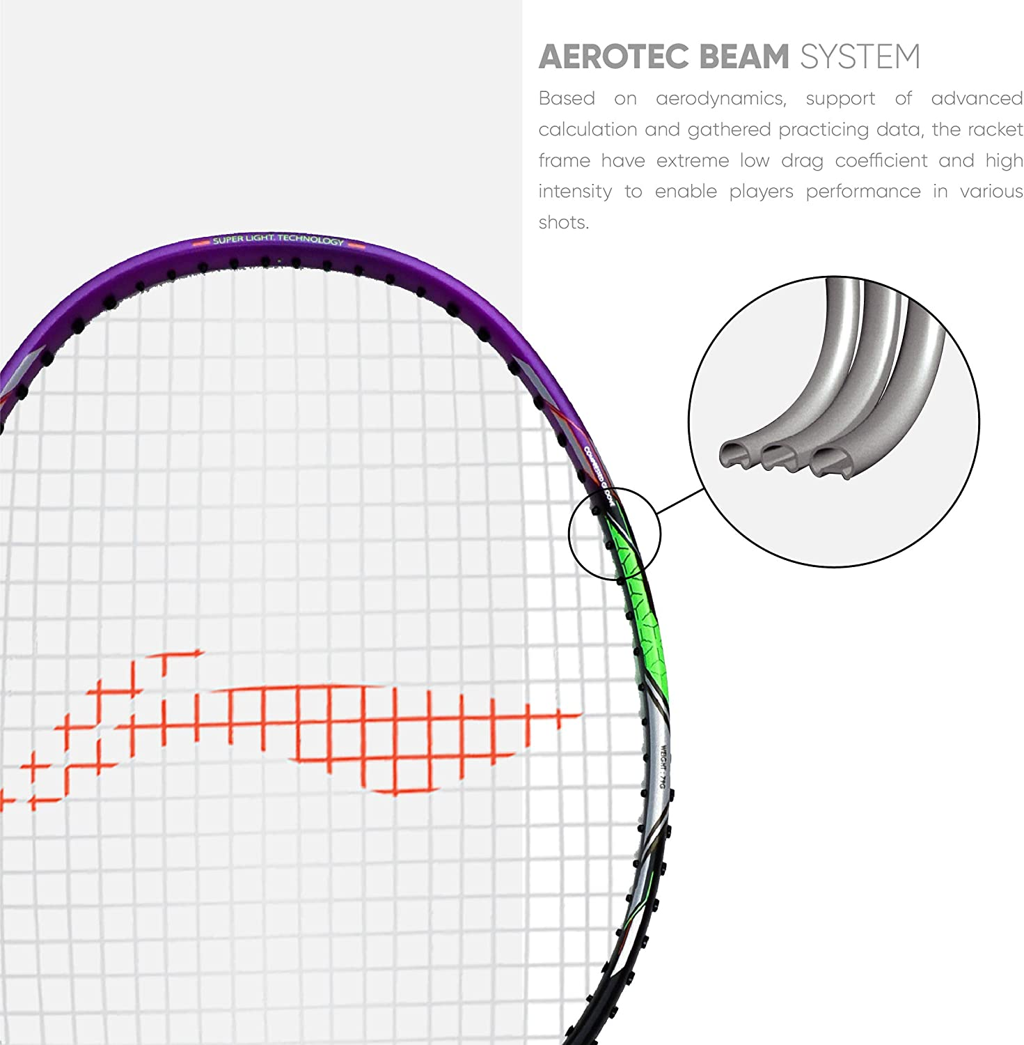 • Li-Ning g force series is made with strong material know as ultra carbon fiber. This material gives excellent rigidity to sustain impact load at very low weight
