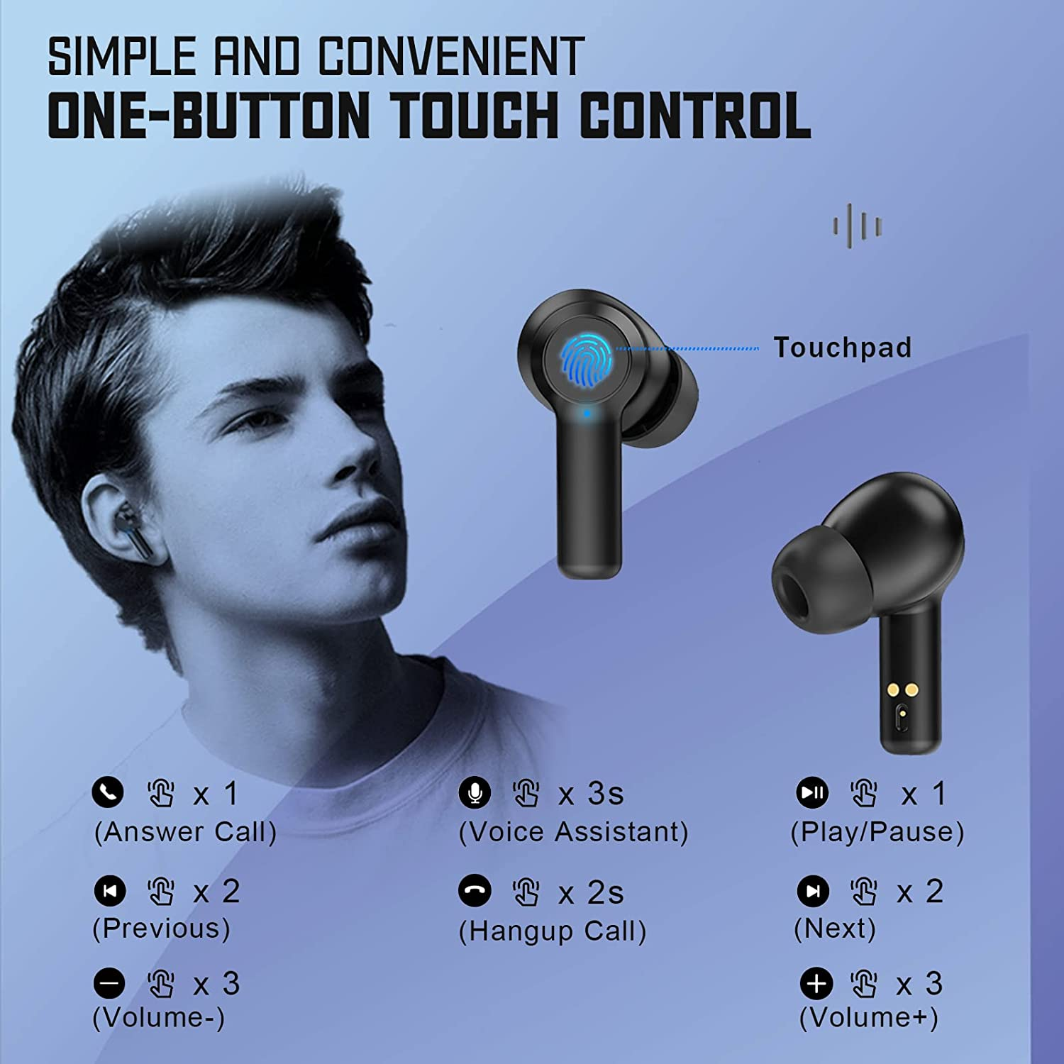 Other Features: The bluetooth ear buds is IPX7 Waterproof, don’t fear about splash and sweat; the bluetooth ear buds will pair automatically when picked up; the ear pods use easy-operation touch button; the case has a widely compatible Type-C fast charging port; the ear buds support native voice assistant like siri; the package comes with 3 ear caps and more for you to discover.